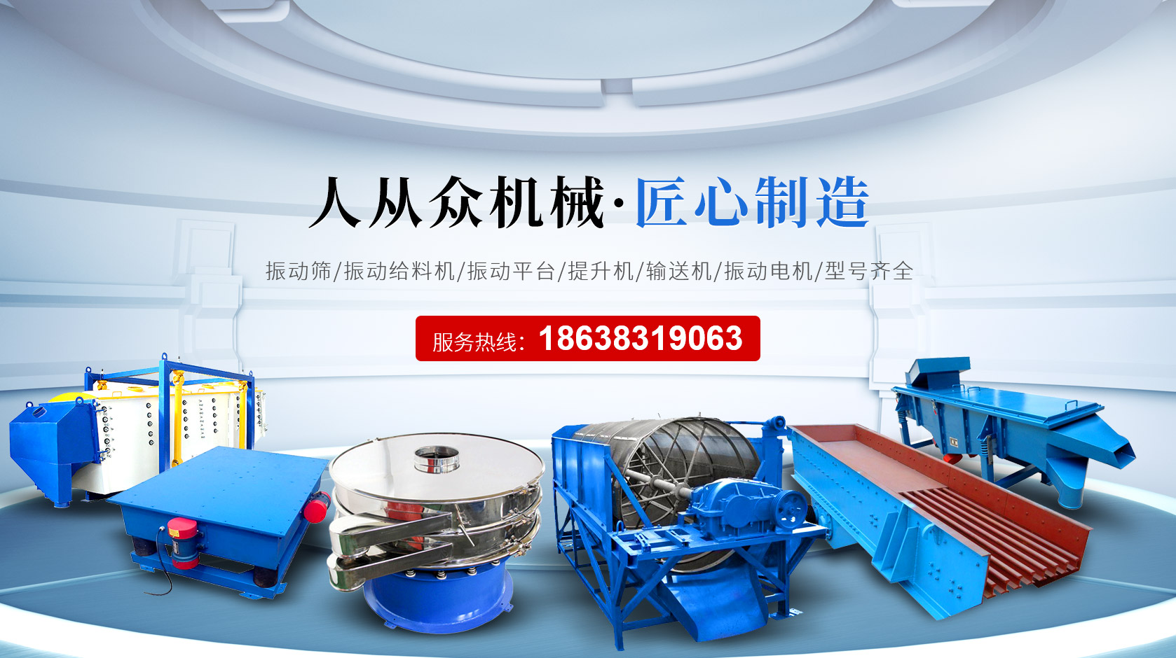 人從眾機械制造致力于振動類設備的生產與研發,為用戶搭建完善、合理的給料/篩分/輸送系統!